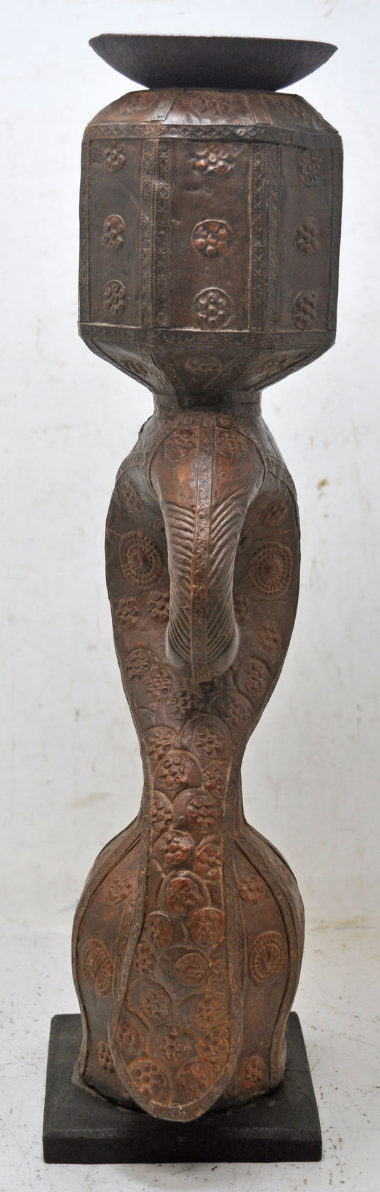 Antique Wooden Peacock Design Leg Candle Holder Stand Original Old Brass Fitted