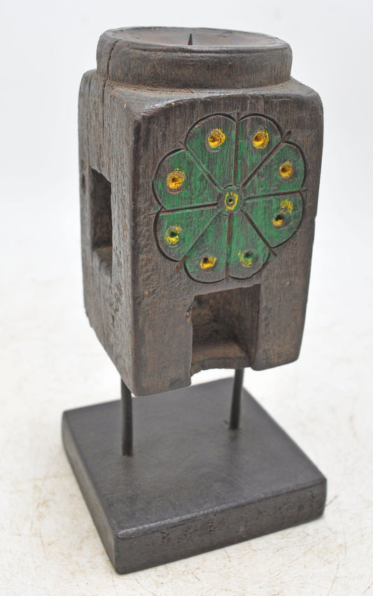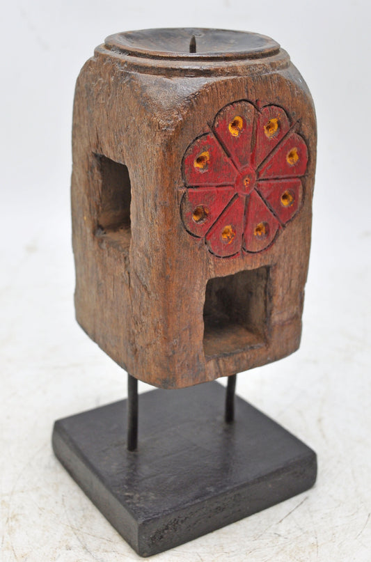 Antique Wooden Candle Holder Stand Original Old Hand Carved