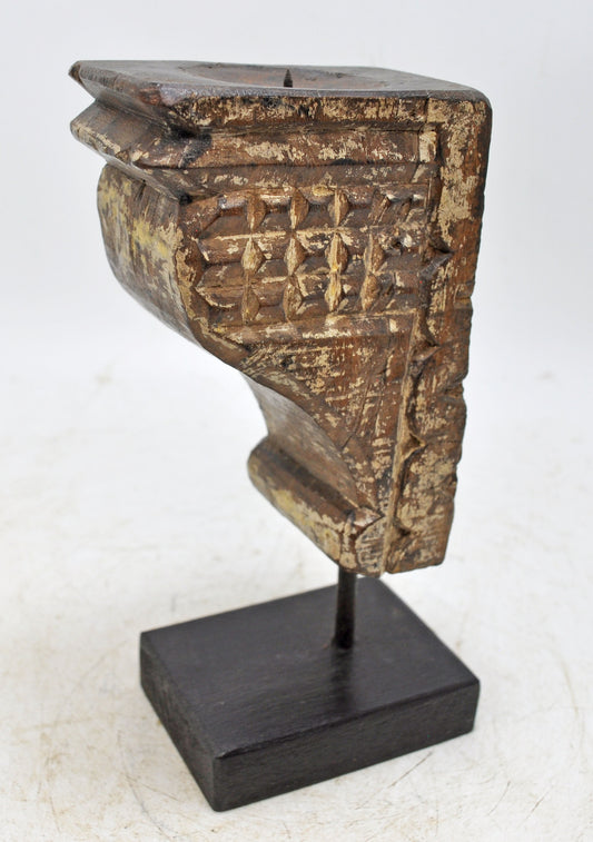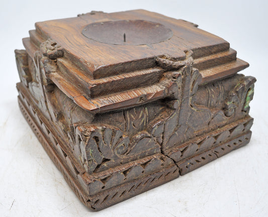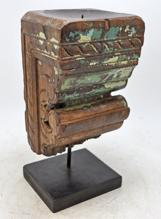 Antique Wooden Carving Block Bracket Candle Holder Original Old Hand Carved