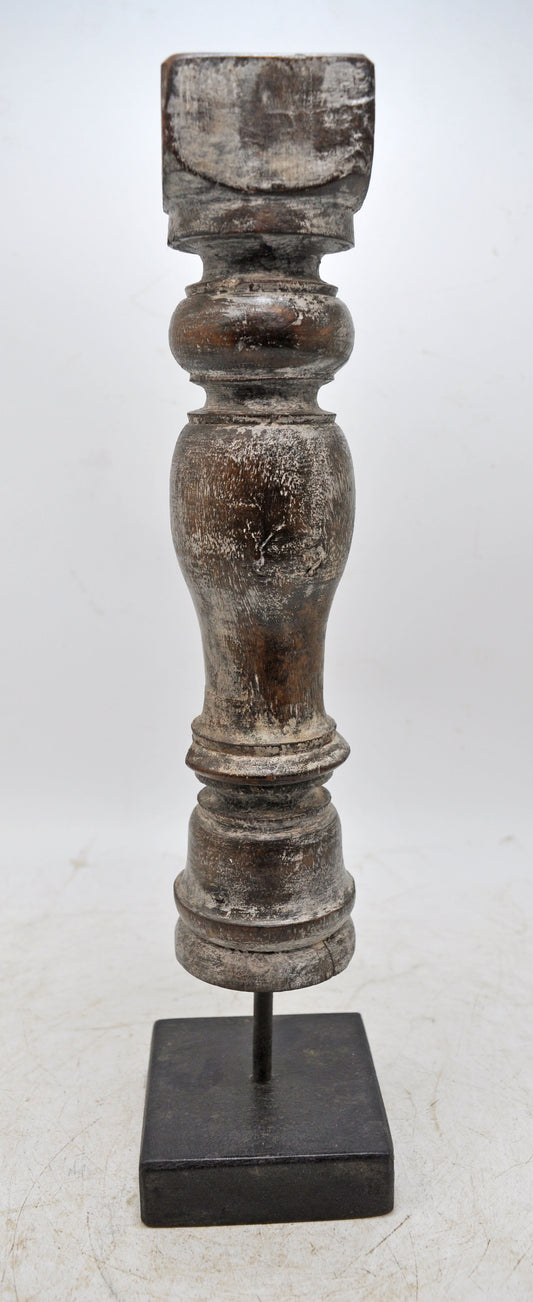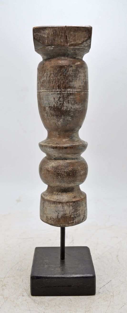 Antique Wooden Pillar Column Base Candle Holder Original Old Fine Hand Carved