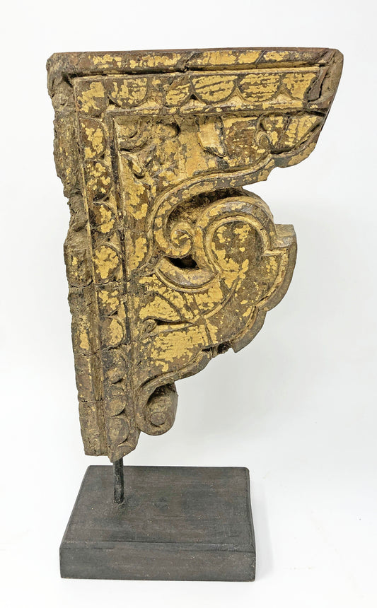 Antique Wooden Heavy Architectural Bracket on Stand Original Old Hand Carved