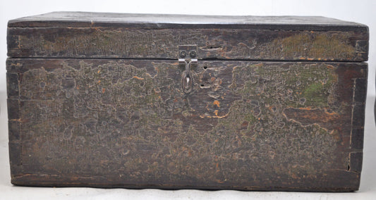 Antique Wooden Large Cash Chest Money Box Original Old Intricate Crafted Polychrome