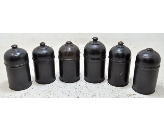 Vintage Lot of 6 Wooden Round Candy Boxes Original Old Black Lacquer Painted