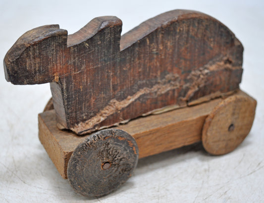 Antique Wooden Holy Cow on Wheels Figurine Original Old Hand Carved