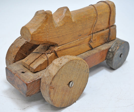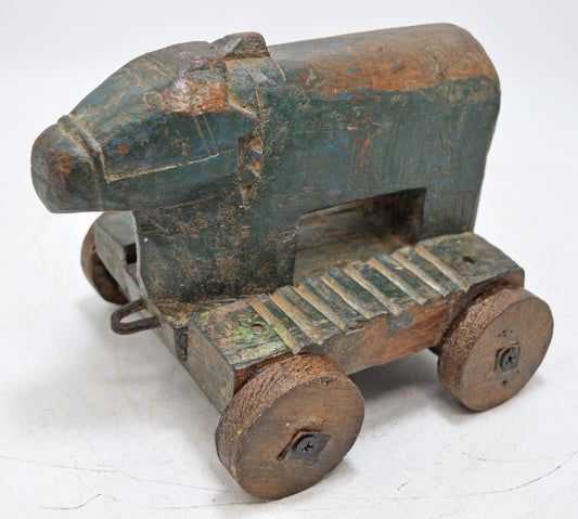 Antique Wooden Holy Cow Nandi on Wheels Figurine Original Old Fine Hand Carved