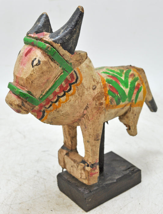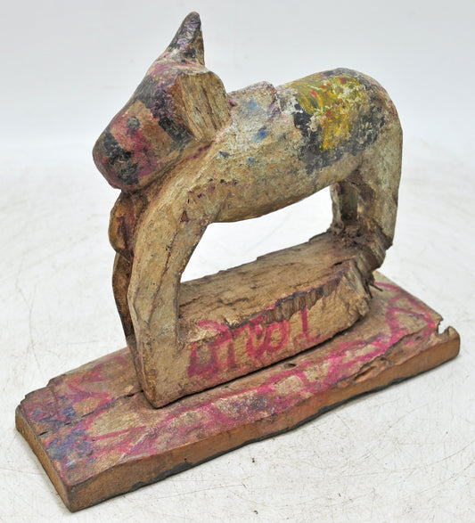 Antique Wooden Holy Cow Nandi Figurne Original Old Hand Carved Painted