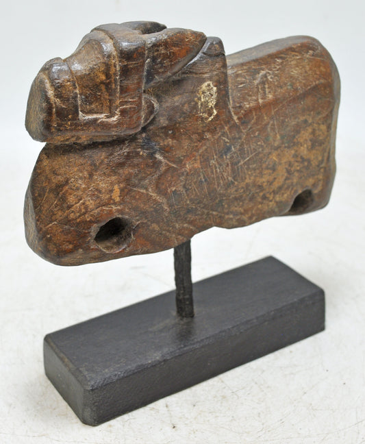 Antique Wooden Holy Cow Nandi Figurine Original Old Hand Carved