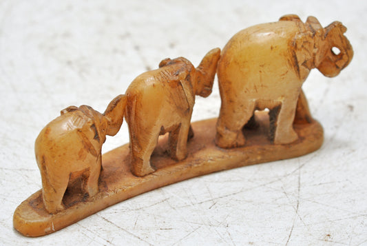 Vintage Stone Set of 3 Elephants Figurine Original Old Hand Carved