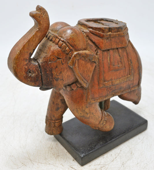 Vintage Wooden Elephant Figurine Original Old Hand Carved