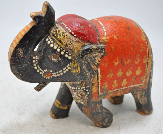 Hand Carved Wooden Standing Elephant Figurine Fine Rustic Hand Painted