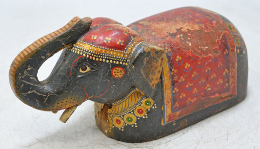 Vintage Wooden Elephant Figurine Original Old Hand Carved Fine Painted