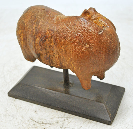 Antique Wooden Cow Figurine Original Old Hand Carved Rustic Painted
