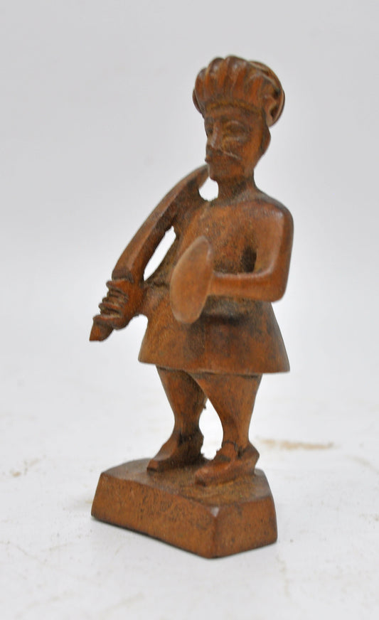 Antique Wooden Ethnic Man Figurine on Stand Original Old Very Fine Hand Carved
