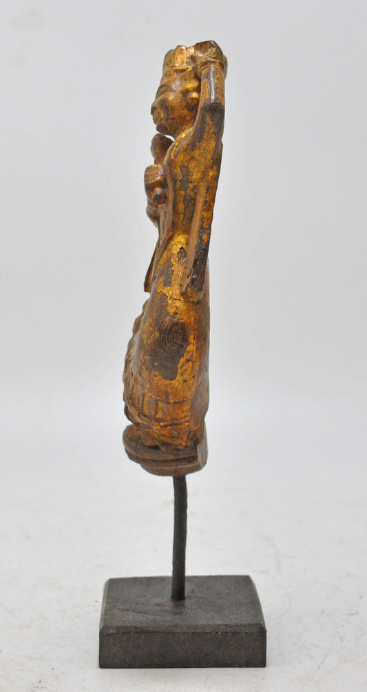 Antique Wooden Dancing Woman Figurine Original Old Very Fine Carved Painted