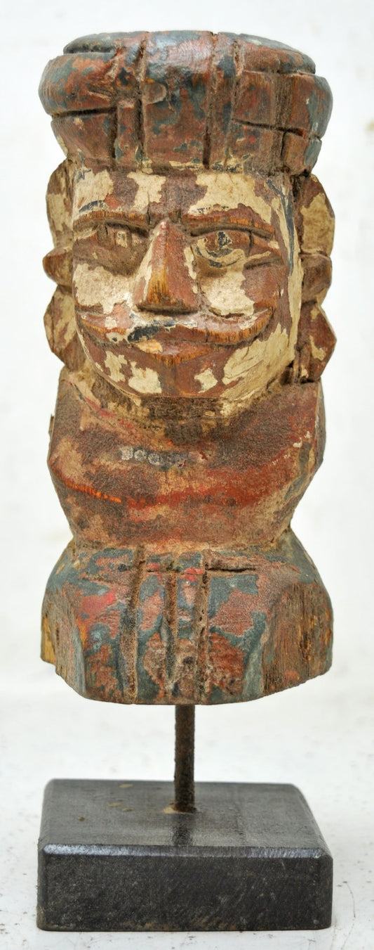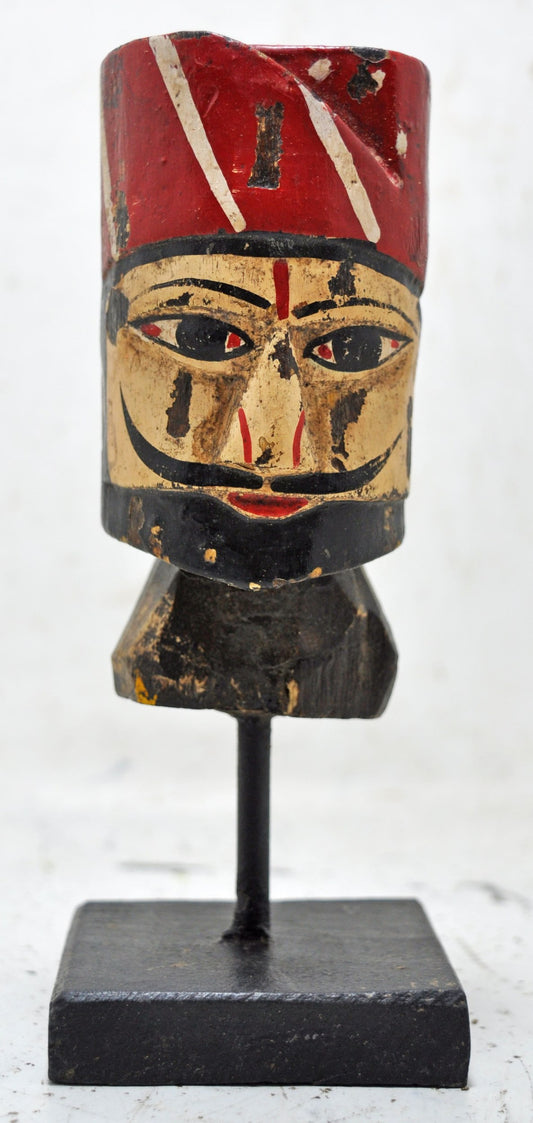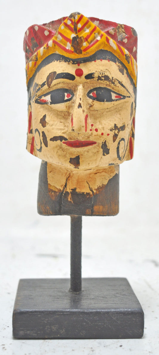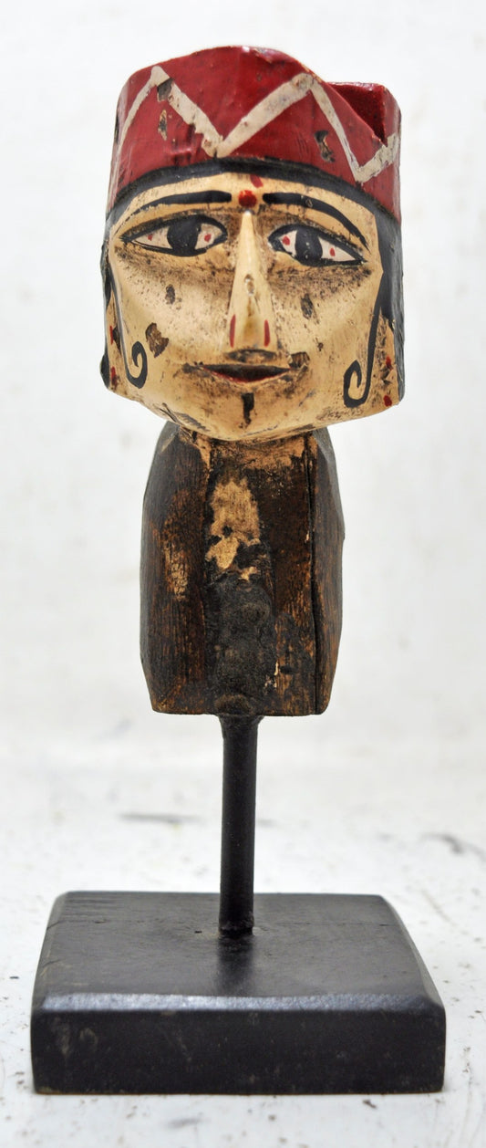 Vintage Wooden Puppet Head Face Bust Original Old Hand Carved Painted