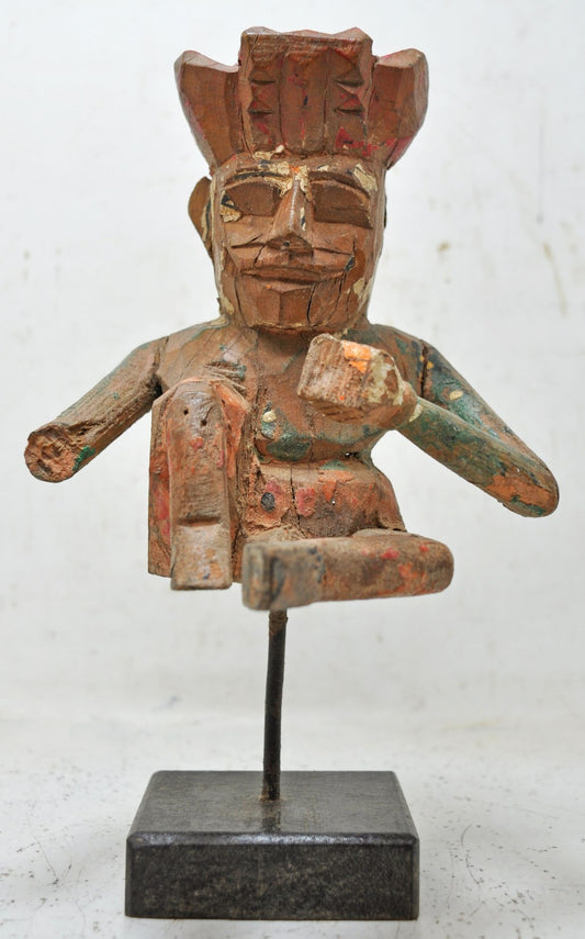 Vintage Wooden Man Figurine Original Old Hand Carved Painted
