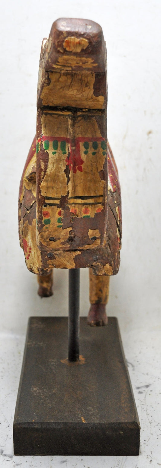 Hand Carved Rustic Painted Wooden Horse Figurine on Stand