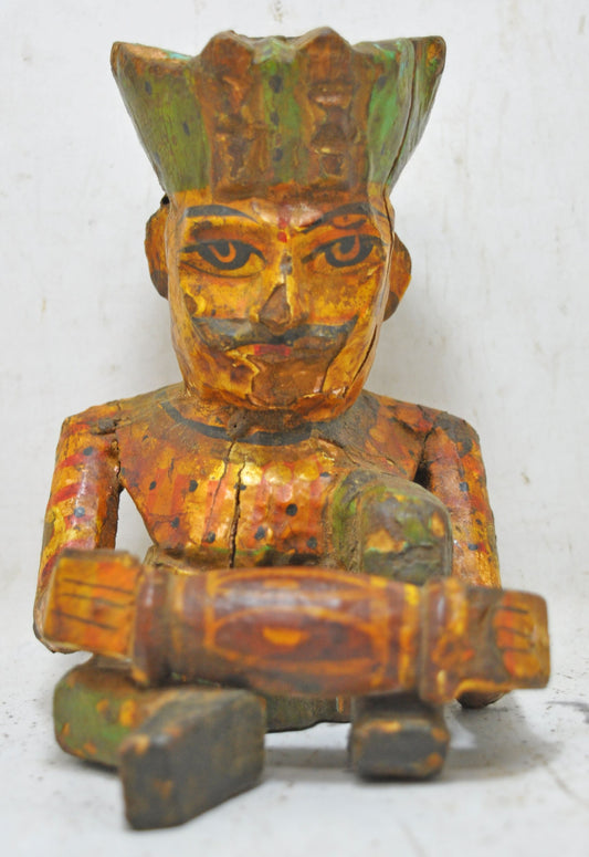 Vintage Wooden Musician Man Figurine Original Old Hand Carved Painted
