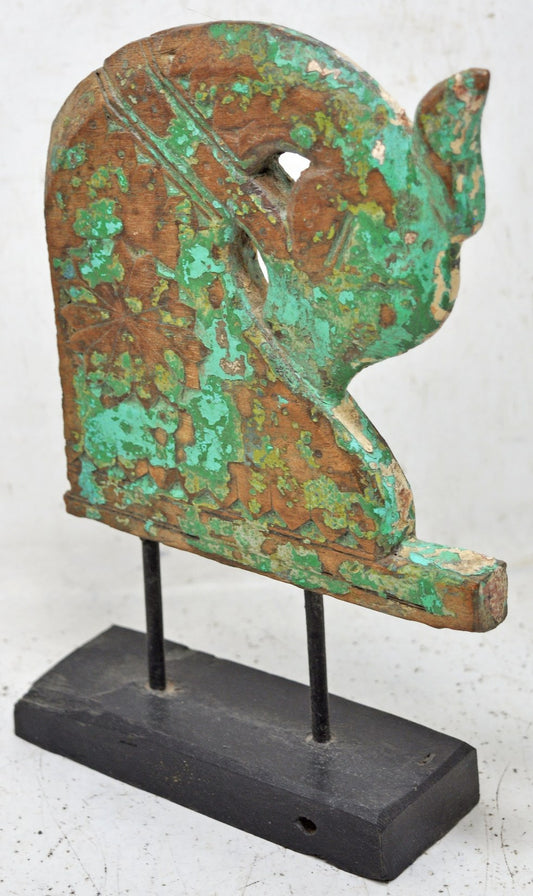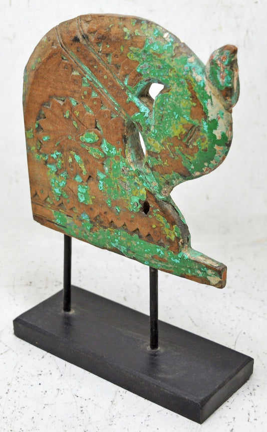 Antique Wooden Elephant Figurine Original Old Hand Carved Very Fine Inlay Work