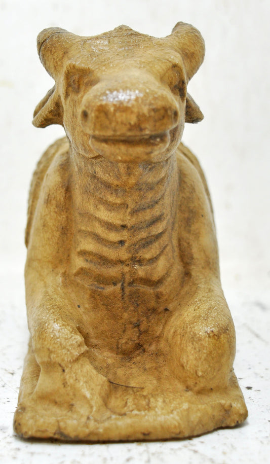 Antique Wooden Holy Cow Nandi Figurine Original Old Hand Carved Painted
