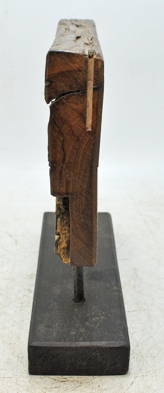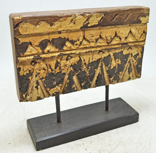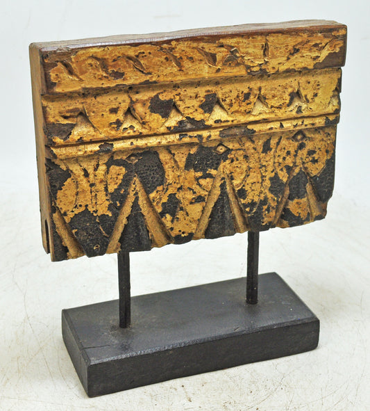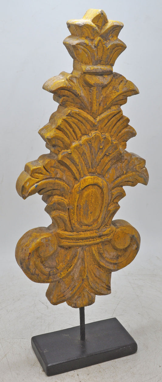 Hand Carved Wooden Flower Carving Panel Plaque on Stand Rustic Yellow Painted