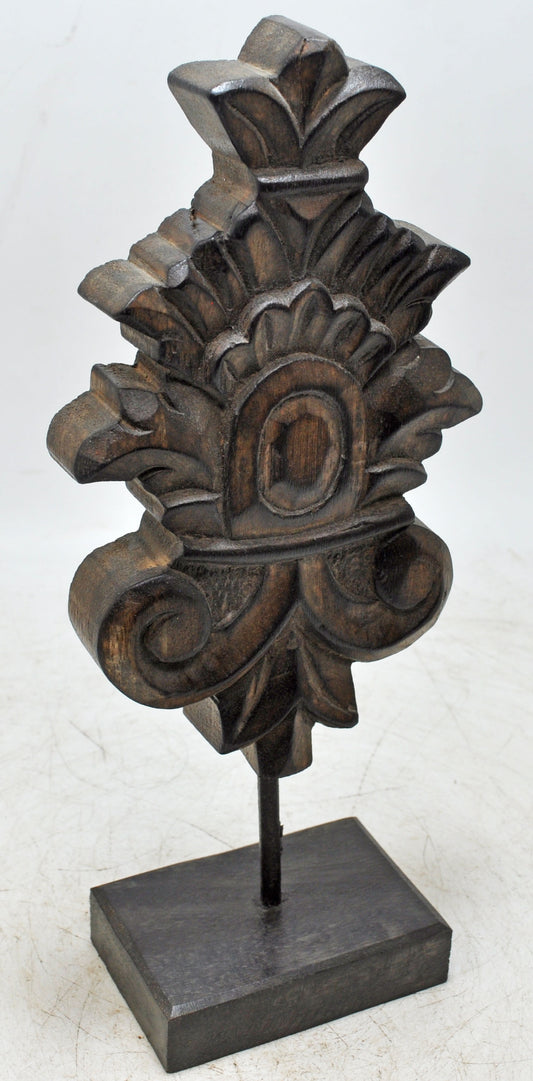 Hand Carved Wooden Flower Carving Panel Plaque on Stand