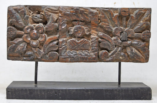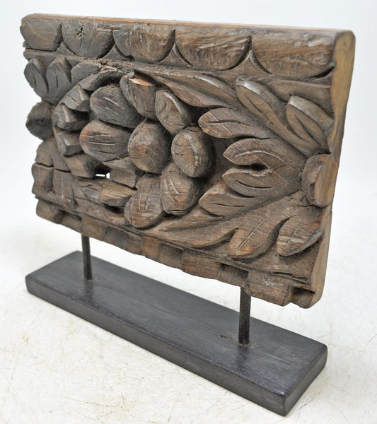 Antique Wooden Floral Carving Panel Plaque Original Old Hand Carved