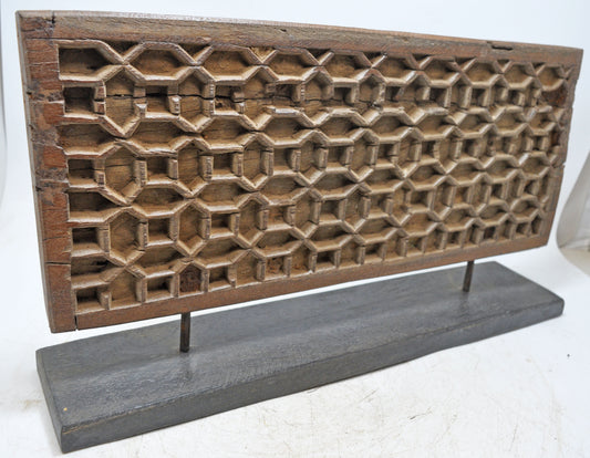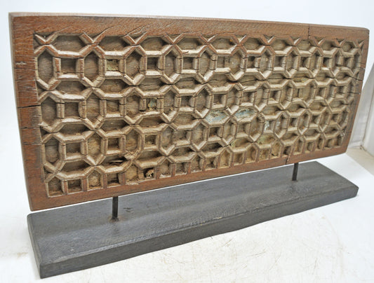 Antique Wooden Geometrical Carving Decorative Panel Original Old Fine Hand Carved