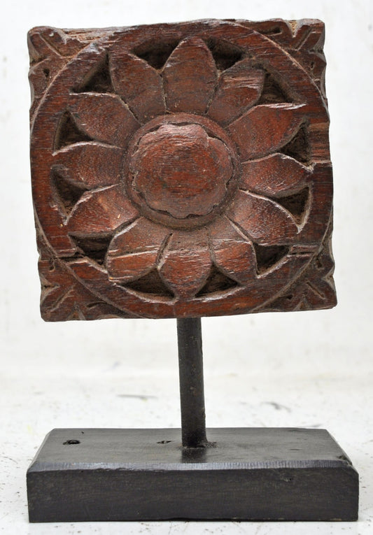 Antique Wooden Flower Carving Panel Plaque Original Old Hand Carved