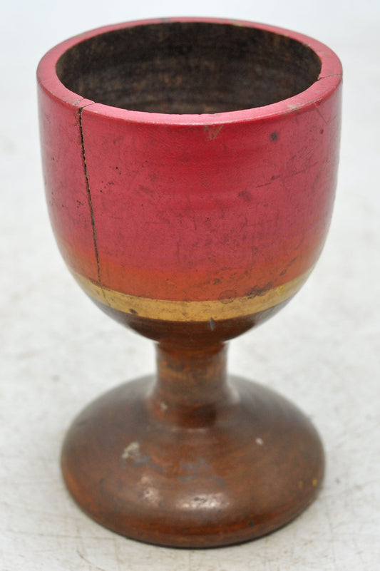 Vintage Wooden Small Cup Glass Original Old Hand Carved Lacquer Painted