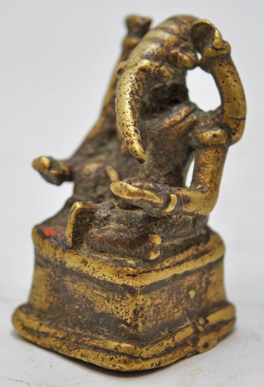 Antique Brass God Ganesha Idol Figurine Original Old Fine Hand Crafted Engraved