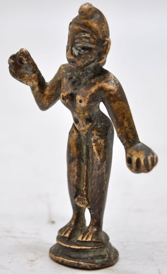 Antique Brass God Krishna Idol Figurine Original Old Fine Engraved