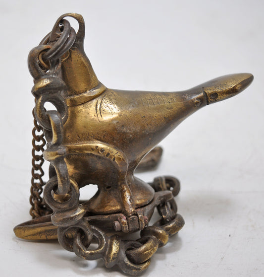 Antique Brass Bird Shape Hanging Diya Light Lamp Original Old Fine Engraved