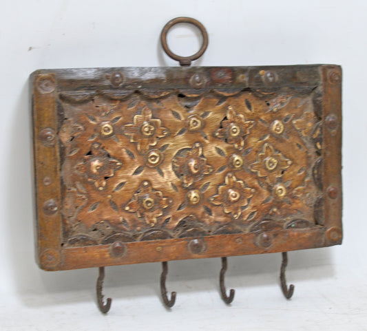Antique Wooden Wall Décor Carving Panel Hook Hanger Original Old Hand Carved