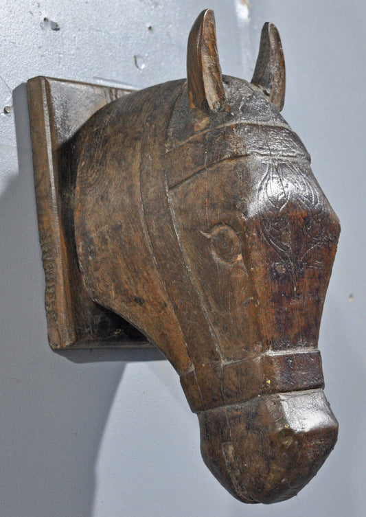 Vintage Wooden Wall Décor Horse Head Bust Figurine Original Old Hand Carved