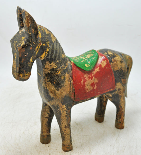 Vintage Wooden Horse Figurine Original Old Hand Crafted Painted