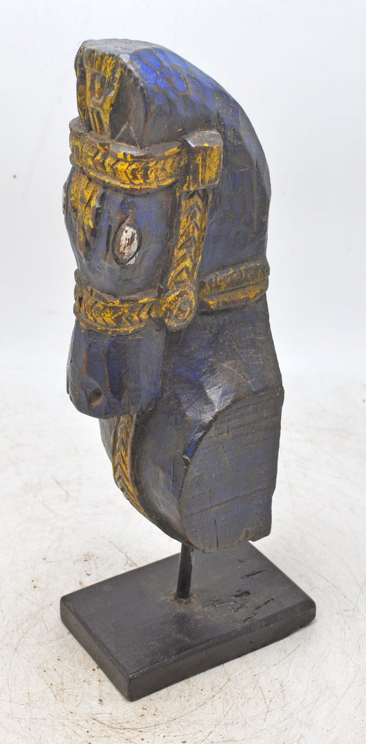 Antique Wooden Horse Head Bust Figurine Original Old Hand Carved