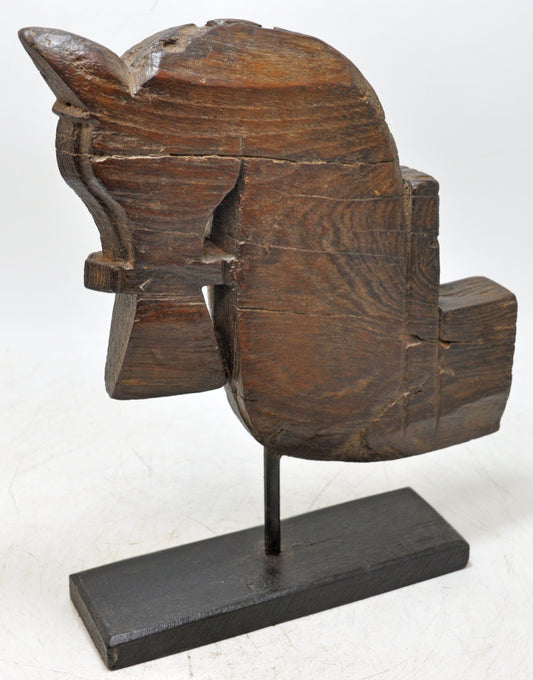 Antique Wooden Architectural Horse Head Bust Figurine Original Old Hand Carved
