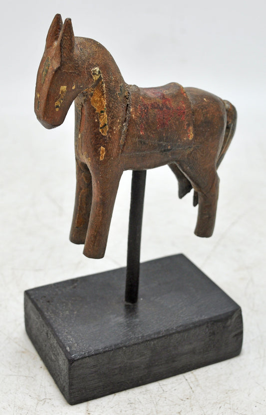 Vintage Wooden Small Horse Figurine On Stand Original Old Hand Carved