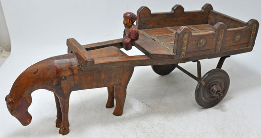 Vintage Wooden Horse With Cart Figurine Original Old Fine Hand Carved