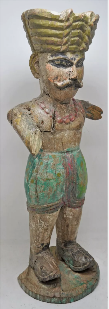 Antique Wooden Isar Man Tall Figurine Original Old Fine Hand Carved Painted