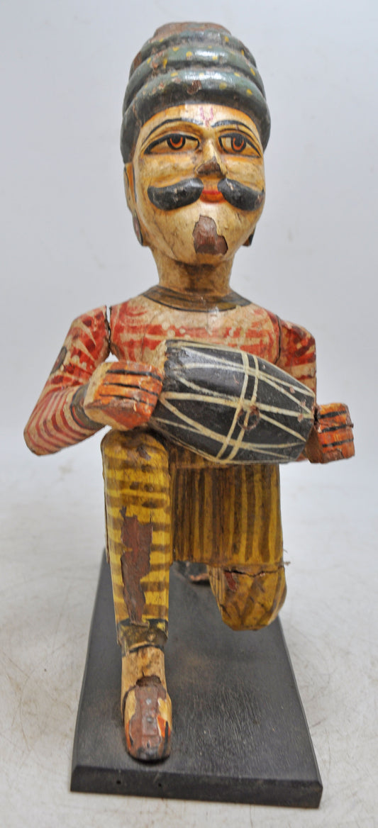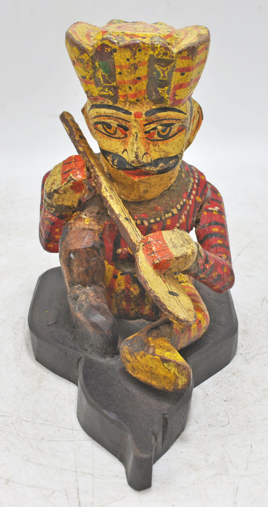 Vintage Wooden Musician Man Figurine Original Old Hand Carved Painted
