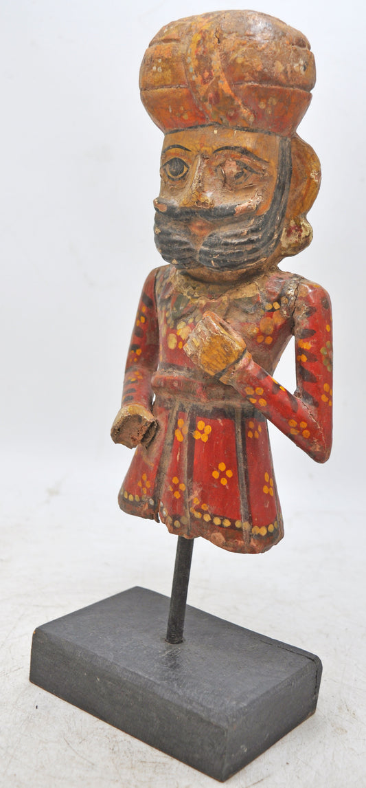 Vintage Wooden Man Figurine on Stand Original Old Hand Carved Painted