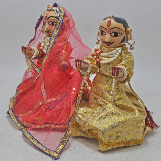 Vintage Wooden Goddess Gangaur Isar Figurine Pair Original Old Hand Carved Painted