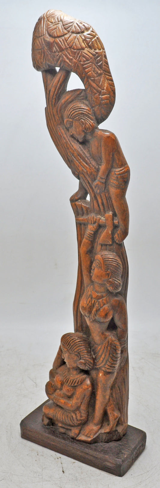 Antique Wooden Tall Ethnic Village Scene Figurine Statue Original Fine Hand Carved