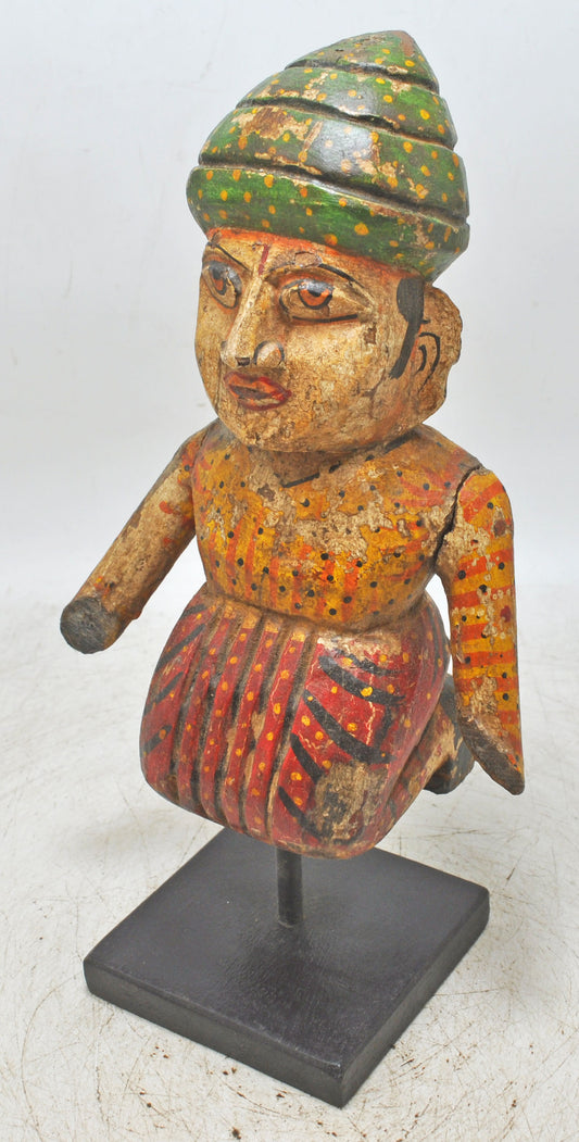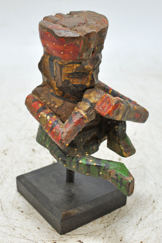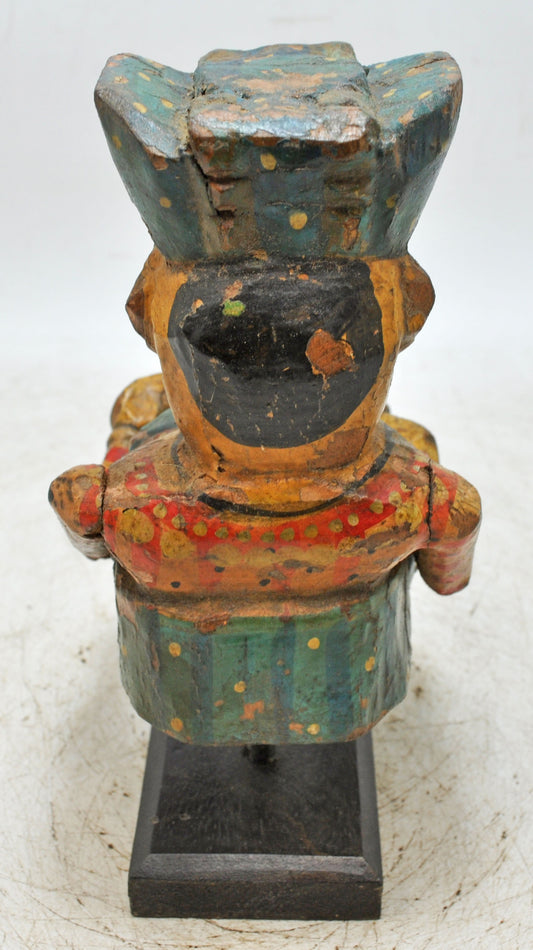 Antique Wooden Musician Man Figurine Original Old Fine Hand Carved Painted