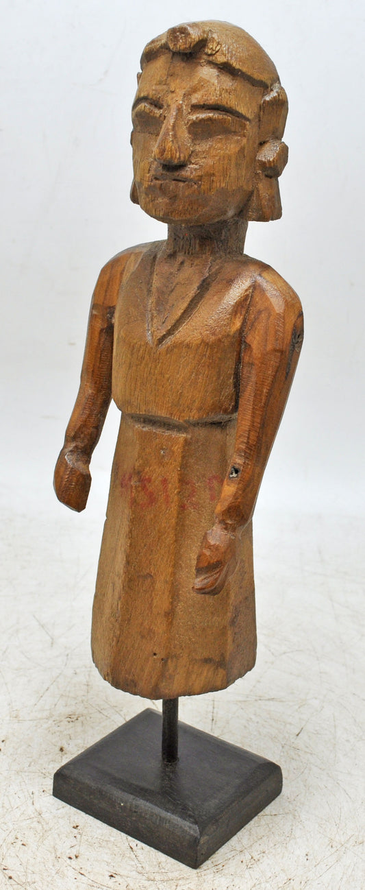 Antique Wooden Tall Watch Man Figurine Original Old Fine Hand Carved