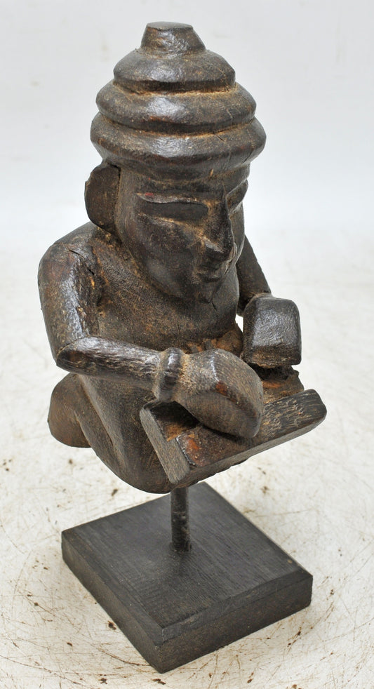 Antique Wooden Musician Man Figurine Original Old Fine Hand Carved
