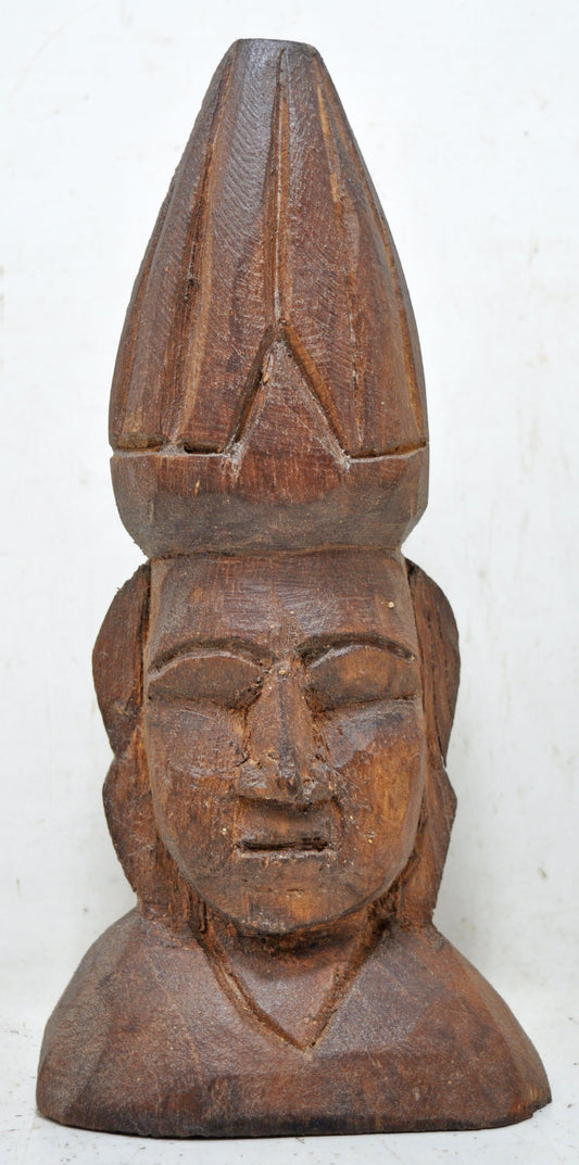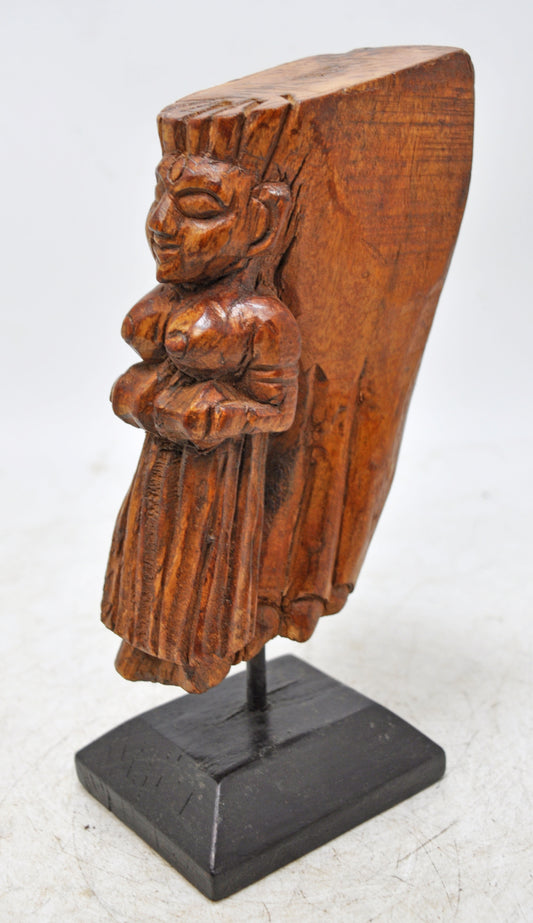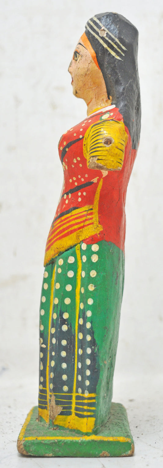 Vintage Wooden Ethnic Woman Lady Figurine Original Old Hand Carved Painted
