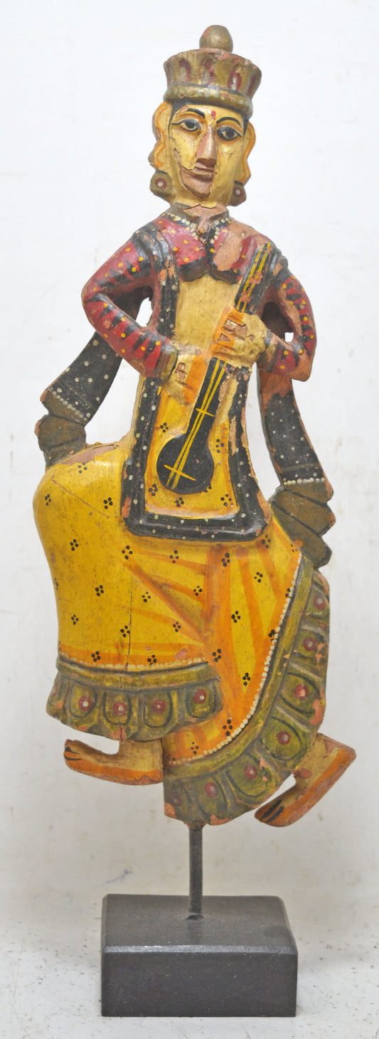 Antique Wooden Woman Lady Musician Figurine Original Old Hand Carved